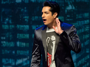 Cet anglo-Montréalais d'origine indienne de 33 ans parle quatre langues dont un excellent français par ses études, un anglais courant, l'hindi et le punjabi, ses langues d'origines indiennes personnelles dans lesquelles il donne aussi des spectacles d'humour. Il dit : «Si j'étais né aux états-Unis, je ne...
